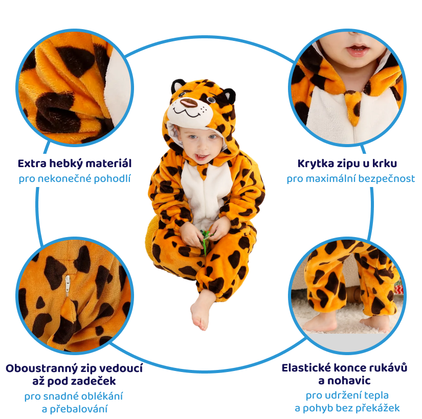 S praktickými vychytávkami a roztomilým designem je dětský overal oranžový gepard tou nejlepší volbou pro radostné chvíle vašich ratolestí.